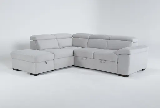 Function comes first with our Dante convertible sleeper sectional, which offers a variety of features that are comfortable and practical. In addition to providing spacious seating, the design boasts a pop-up mechanism that allows it to transform into a cozy bed. You also get to enjoy the convenience of a storage chaise that hides away blankets and pillows for easy accessibility. Adjustable ratchet headrests create a low-profile contemporary look when down and casual appeal when up, while the polyester chenille-blend upholstery is both soft and easy to clean. You'll love the grounded color palette, which favors earth tones.