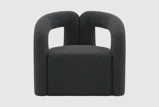 The Darian Black Accent Chair is a stylish and modern addition to any living space. Its sleek design and luxurious boucle fabric make it a standout piece that offers both comfort and sophistication. Frame made of high quality pine wood for extra durability. Upholstered in luxurious boucle with high density foam padding. Modern open "T" back accent chair with rounded finishing.