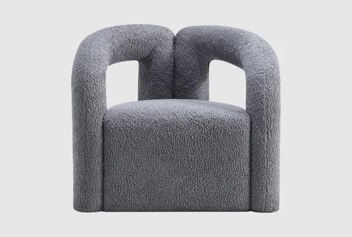 The Darian Grey Accent Chair is a stunning addition to any modern living space. Upholstered in luxurious grey boucle fabric, this chair offers both style and comfort. Its unique open "T" back design and rounded finishing make it a standout piece.