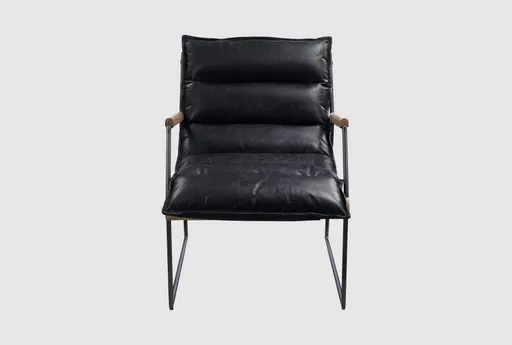 The Davina Espresso Top Grain Leather Accent Chair introduces a confident, modern silhouette with black top grain leather upholstery and channel tufted cushions that balance support with a plush profile. Its armless, tight-back design reads linear and refined, making it a standout piece among modern living room furniture and mid-century modern inspired seating. The padded seat uses dacron wrapped foam over a medium-firm core to deliver comfortable, supportive seating that holds shape through daily use. A low-profile sled base in metal with subtle wood accents provides stability while reinforcing the frame for long-term structural integrity. Piped edge detailing and a smooth leather surface keep lines clean and visually ordered, creating a durable upholstery choice that is easy to maintain. Compact by design, the Davina chair is a smart small space solution that brings industrial and contemporary character to entryways, offices, and living rooms.