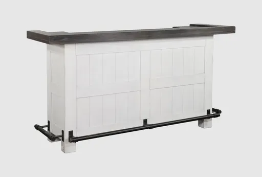 Bring a touch of traditional charm to your dining room or kitchen with the Dawn White/Espresso Wood 78" Bar. This bar cabinet offers ample storage space for your beverage essentials, while its European Cottage color scheme provides a warm and inviting look. Crafted with mindi and mahogany wood, it is both sturdy and stylish.