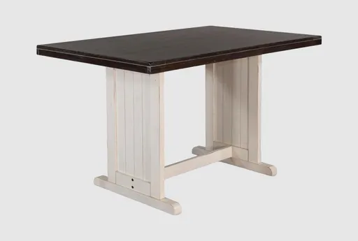 Enhance your dining space with the Dawne White/Espresso Wood 60" Rectangular Counter Height Dining Table. This beautifully designed table combines traditional style with the charm of European Cottage aesthetics. Perfect for both dining rooms and kitchens, this table comfortably seats four and features a sturdy pedestal base for added stability.