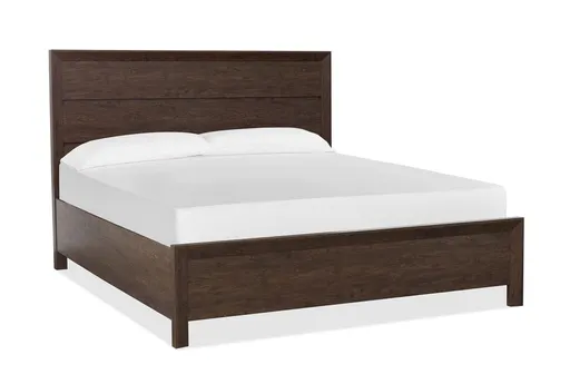 The Daxton King Wood Panel Bed in Columbian Walnut offers a perfect blend of classic and contemporary styles. Crafted from cherry paper veneers and hardwood solids, this bed provides both durability and elegance. Its Eastern King size ensures ample space for a comfortable night's sleep.