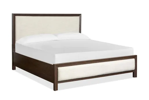 Transform your bedroom with the Daxton Queen Brown Wood & Upholstered Panel Bed. This bed combines functionality with a classic design, featuring storage drawers that provide ample space for all your essentials. The Columbian Walnut color and cherry paper veneers create a warm and inviting atmosphere, making it a perfect centerpiece for any bedroom.