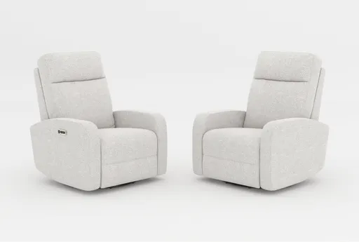 Let relaxation soak in while you’re enjoying our Decorah power swivel glider recliner. With a wide range of motion – back and forth, side to side and the smooth, soothing sensation of reclining at the touch of a button – you can experience comprehensive comfort. Upholstered in a performance fabric, you’ll relish extraordinary durability and cleanability, as well as the ease and convenience of a USB charging port. The design is compatible with battery packs, so you can float it anywhere in your room. We offer a cream version in store and online, and we have additional colors available online only. This design is the perfect bedroom chair, reading chair, club chair or accent chair for living room.