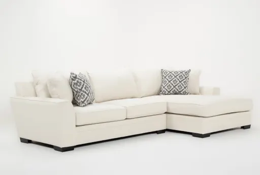 Delano Ivory 2 Piece Sectional With Right Arm Facing Oversized Chaise brings roomy, casual seating to the living room with an oversized chaise for easy lounging. Upholstered in high performance fabric (55.3% olefin, 44.7% poly), it resists everyday wear while remaining soft and inviting. The ivory tone brightens a space and pairs effortlessly with warm wood accents and textured rugs for a pulled-together look.Two-piece layout with an oversized right-arm-facing chaise for relaxed loungingUpholstered in high performance fabric (55.3% olefin, 44.7% poly) that stands up to daily useMade in the USA with a supportive frame and comfortable seat cushions for lasting comfort