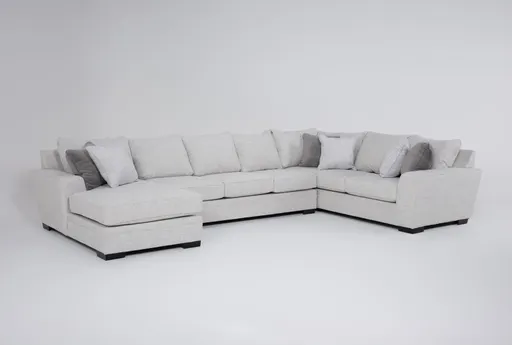 Enhance your living room with the Delano Oyster Grey 3 Piece 169" Sectional. This modern sectional, featuring a left arm facing chaise, offers both style and comfort for your home. Upholstered in a soft oyster-colored fabric, it provides a neutral and inviting look suitable for any decor.
