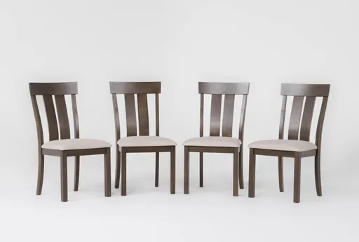 The Delfina II Brown Wood + Grey Upholstered Dining Chair Set of 4 is perfect for enhancing your dining room. These traditional chairs provide both comfort and style with their grey fabric upholstery and sturdy wood construction. Designed to complement a variety of dining tables, this set is a great addition to any home.