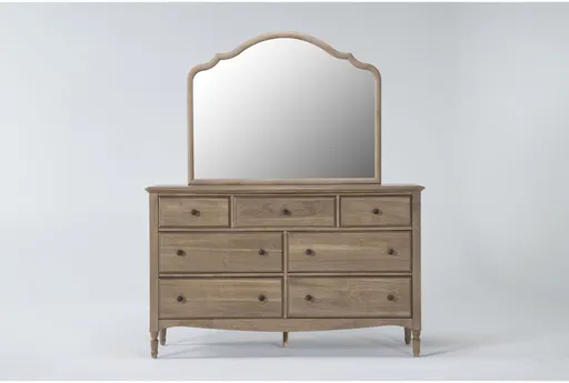 The Deliah II Natural Wood 7-Drawer Dresser with Mirror is a perfect addition to any traditional bedroom. Made from solid hardwood and acacia veneer, this dresser offers ample storage with its seven drawers and comes with a large mirror. The natural wood finish adds a touch of warmth and charm to your space.