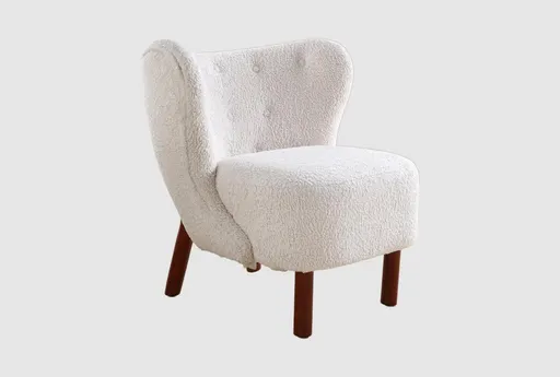 The Delora White Teddy Sherpa Accent Chair adds a touch of cozy sophistication to any living room. Its plush white teddy sherpa fabric invites you to relax, while the tufted back and curved shape offer stylish comfort. This armless chair is perfect for creating a comfortable, casual seating area in any home.