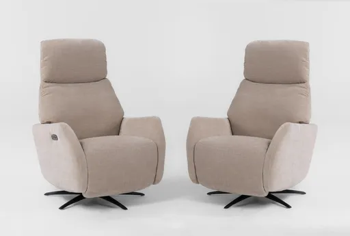 Includes a set of 2 power swivel recliners with adjustable headrests