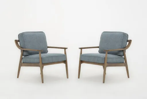 Dena II Blue Accent Chair, Set Of 2 pairs modern lines with mid-century influence and an open Asian hardwood frame, creating a relaxed focal point for your living room. Each chair is upholstered in 100% polyester fabric with padded seat and back cushions for everyday comfort, while tapered legs and exposed wood arms add sculptural interest. The compact profile and supportive seat make these chairs easy to arrange around a sofa or beside a reading lamp.