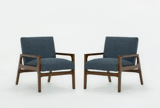 Derick II Blue Accent Chair, Set Of 2 pairs a clean modern profile with warm Asian hardwood accents, making these chairs a versatile choice for living room seating. Each chair is upholstered in 100% polyester fabric with padded seat and back for comfortable support, and the sculpted Asian hardwood arms complement the frame. The compact footprint and two-chair arrangement make them easy to place for conversation areas or to flank a sofa.