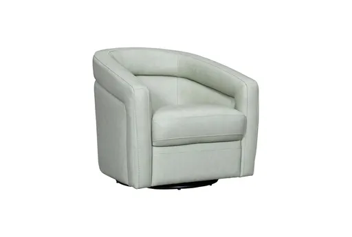 Desi Mint Leather Swivel Accent Chair pairs a fresh mint leather upholstery with a compact barrel profile that swivels for easy conversation and TV viewing. The swoop arm and recessed armrest help cradle you into the seat while a Polisoft cushion provides soft, resilient support for lounging. Mounted on a plywood frame with a steel swivel base, the chair balances comfort and everyday durability for living rooms and family rooms.