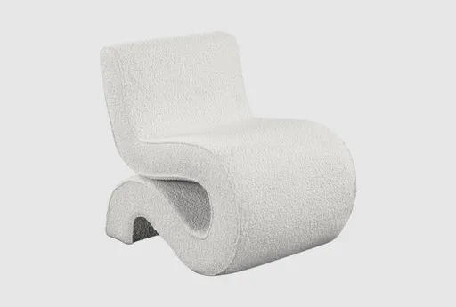 The Desiree Cream Beige Boucle Fabric Accent Chair brings a touch of modern design to any room. Its armless and curved shape makes it a stylish addition, perfect for kids' rooms or living rooms. Upholstered in boucle fabric, this chair provides both comfort and contemporary appeal.