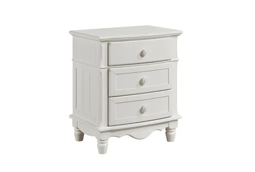 The Destini White Wood 3-Drawer Nightstand is a perfect addition to your bedroom, offering both style and functionality. Its traditional design and spindle legs create a timeless piece that complements any decor. This nightstand provides ample storage with its three drawers, making it ideal for keeping your bedside essentials organized.