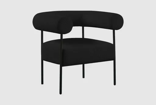 The Dex Black Boucle Fabric Accent Chair is a stylish addition to any modern living space. Its curved design and comfortable arms make it perfect for relaxing in the living room or kids' room. Upholstered in black boucle fabric, this chair combines contemporary aesthetics with cozy comfort.
