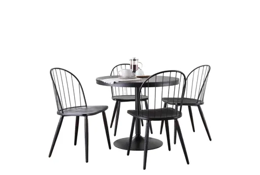 Dia Black Metal And Black Wood Top Dining Table With Lee Chair Set For 4