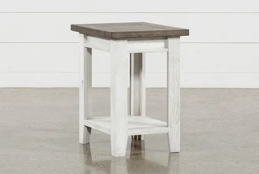 With its charming two-tone finish, our Dixon chairside table brings a touch of cottage character to your living room. Crafted with wood and veneers, this design allows you to enjoy a fresh twist on traditional taste. Its distressed white base offers shelving for books and accents, while the planked top brings rich texture and additional surface space to display your décor. This design also serves as the perfect bedside table.