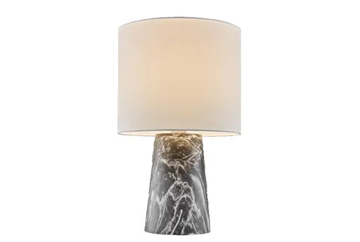Elevate your living space with the 22" Faux Black Marble + White Shade Table Lamp. This modern table lamp features a striking black faux marble base paired with a crisp white shade, creating a sophisticated and contemporary look. Perfect for adding a touch of elegance to any room, this lamp is crafted from high-quality ceramic, fabric, and metal materials.