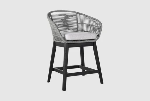 This 23" Grey Rope and Black Eucalyptus Wood Indoor Outdoor Counter Stool combines modern design with practical functionality. It is perfect for both indoor and outdoor settings, adding a sleek touch to any space. The stool offers a comfortable seating experience with its thoughtful construction and materials.
