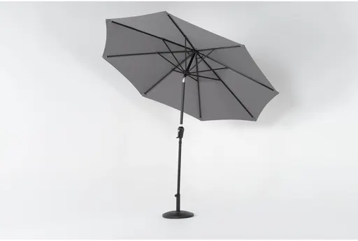 Enhance your outdoor space with the 9' grey outdoor market umbrella with base. Its modern design and neutral color palette make it a versatile addition to any exterior setting. Enjoy the comfort and protection from the sun under this stylish and functional umbrella.