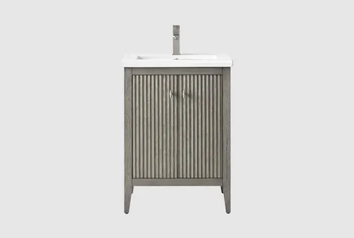24" Grey Single Sink 2 Door Bath Vanity Cabinet With Ceramic Top & Silver Nickel Hardware offers a compact, modern solution for small bathrooms. The ceramic top includes an integrated single sink for easy cleaning, while two doors open to a roomy interior that keeps toiletries and towels out of sight. Made with poplar and manufactured wood and finished in grey with silver nickel hardware, this vanity balances practical storage with clean modern lines to simplify daily routines.