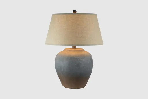 The 27.5 Inch Grey Rust Hydrocal Oval Urn Table Lamp is a versatile addition to your bedroom or living room. Its plaster construction features a textured hydrocal material, ensuring durability and a visually appealing finish. The oval urn shape, combined with a neutral grey rust color, creates a casual yet stylish look perfect for any space.