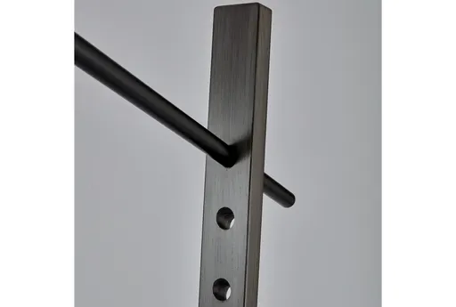 Illuminate your space with the 83" Industrial Cantilever Black Wood Arc Floor Lamp. This modern floor lamp features a sleek black finish and a stylish arched design. With its combination of wood and fabric materials, it adds a touch of sophistication to any room.