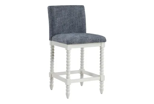 The 39" Kyree Blue Barstool with Back is a modern addition to your dining room. Designed with a high back, it offers comfortable support. The barstool features spindle legs and is armless for a sleek look.