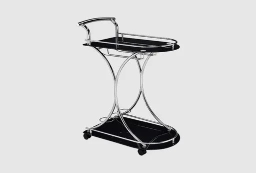 Introducing the Modern 2-Shelve Chrome Silver Metal Black Rolling Kitchen Bar Cart. This sleek and stylish bar cart is perfect for your dining room or kitchen, offering both functionality and modern design. With its metal and glass construction, this bar cart is built to last and will be a chic addition to your home.