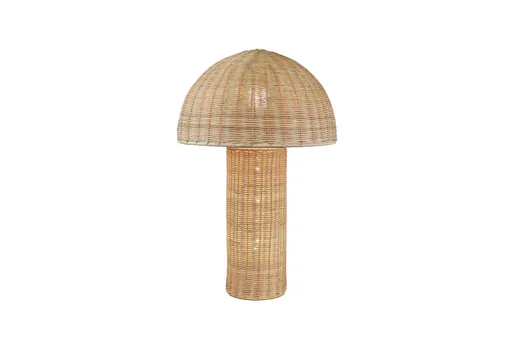 Illuminate your space with the 24" Natural Rattan Mushroom Dome Table Lamp with Night Light by Nate Berkus + Jeremiah Brent. This modern table lamp features a unique mushroom shape and a woven design that adds a touch of nature to any room. Perfect for kids' rooms or bedrooms, this lamp creates a warm and inviting atmosphere.