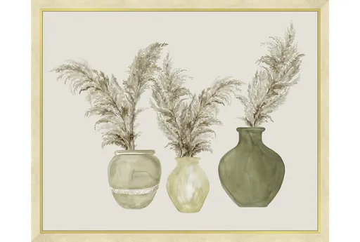 This stunning 54X44 Pampas In Green Pots With Gold Frame framed art is perfect for adding a touch of botanical charm to any room. Featuring soft, spring colors and traditional styling, this piece is ideal for bedrooms, dining rooms, and living rooms. Made in the USA, this beautiful artwork is sure to brighten up your home.