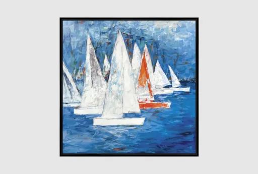 Add a touch of coastal charm to your space with the 47X47 Sailboats With Black Frame. This stunning framed art piece features an array of sailboats set against a blue and white canvas, creating a serene and inviting atmosphere. Made in the USA, this art print is designed to bring a nautical feel to any room.