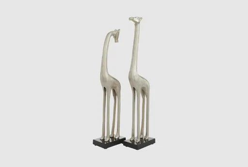 Enhance your home decor with the 6" X 27" The Novogratz Silver Aluminum Metal Giraffe Sculpture Set of 2. These elegant sculptures are designed to bring a touch of contemporary sophistication to any space.