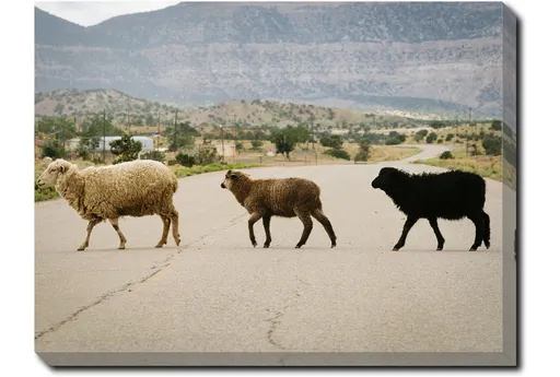 The 30"X40" Sheep Crossing Gallery Wrap Canvas captures the serene beauty of rural life with a stunning photograph of sheep crossing a road. This rustic piece of canvas art is perfect for adding a touch of natural charm to any space. The horizontal orientation and soft colors bring warmth and tranquility to your home decor. Features a gallery wrap for a polished look. Constructed from durable canvas material. Natural pinewood frame for stability.