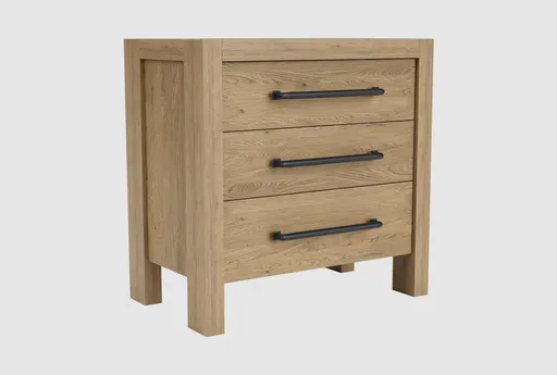 The Davie 3-Drawer Nightstand with USB combines modern design with practical functionality. Crafted in a beautiful pale oak finish, this nightstand is made from wood composites and select hardwood solids, ensuring durability and style. Its contemporary look is enhanced by the sleek lines and sturdy construction, making it a perfect addition to any bedroom.