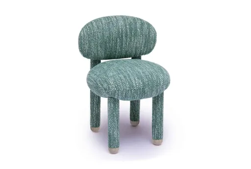 Enhance your dining experience with the 23" Teal Knubby Performance Fabric Vanity Dining Side Chair. This modern, armless chair features a comfortable back, making it a stylish and functional addition to your dining room or kitchen.