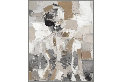 42x52 Tonal Abstract I presents a textured, figurative study that anchors modern spaces with a calm, neutral palette. The print is produced on canvas and stretched over a pine frame, then finished with a slim grey gallery frame that provides a clean rectangular edge. Layered brushstrokes in beige, brown, grey, black and white create a tonal composition that reads as both contemporary and timeless, making it a strong option for large wall art needs. The vertical, rectangular orientation emphasizes height and visual movement without overpowering a room. Ready to hang out of the box, this framed art includes a protective polystyrene backing and reinforced hardware for straightforward installation. Made in the USA, the piece offers a textured presence and nonrepresentational, figurative appeal that works with minimalist, urban modern, or organic modern schemes. Its neutral color study makes coordinating with existing decor simple while providing a serene focal point for living rooms, offices, and entryways.