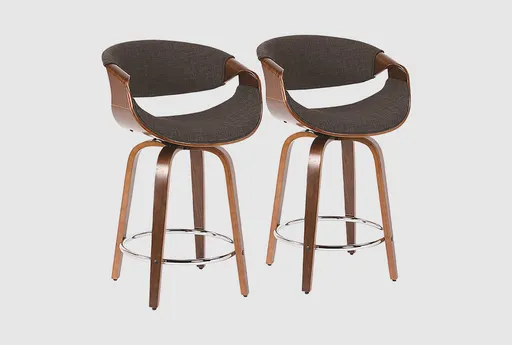 Enhance your dining room or kitchen with the Vini Curve Charcoal Metal Fabric Walnut 24" Counter Height Stool Set Of 2. These modern stools feature a sleek, curved design that adds both comfort and style to any space. The combination of walnut wood, charcoal fabric, and chrome accents creates a sophisticated look perfect for contemporary homes.
