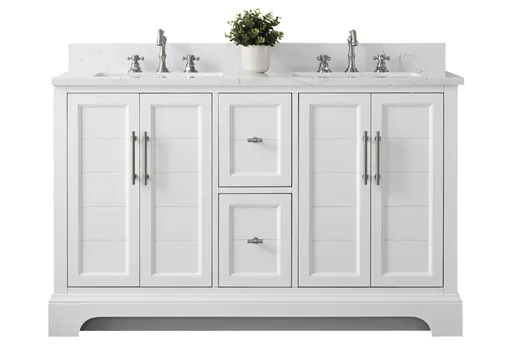 Meet the 45" White Double Sink 4 Door & 2 Drawer Bath Vanity Cabinet With Engineered Marble Top & Silver Hardware – a design fit for the home of your dreams. Get free shipping and save more!
