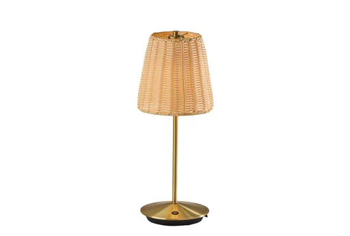 The 15" X 6" Andy Antique Brass LED Cordless Table Lamp combines timeless elegance with modern functionality. Its antique brass finish and intricately woven plastic rattan shade create a classic yet contemporary look that enhances any space. This versatile lamp is perfect for both indoor and outdoor settings, making it an ideal choice for bedside tables, patios, or outdoor events.