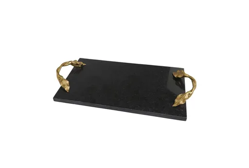 21" X 10" Black Marble Rectangle Tray with Gold Twisted Leaf Handles