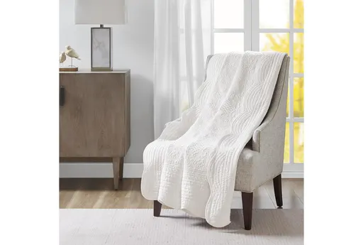 Wrap yourself in comfort with the 60" x 70" Blue Polyester Bayside Quilted Throw Blanket. This solid white throw features a beautiful quilted design that adds a touch of charm to any room. Its machine washable fabric ensures easy care and maintenance.
