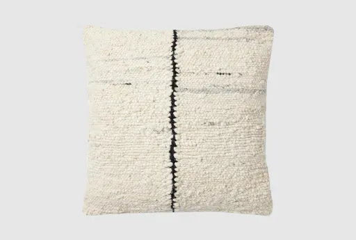 Add a touch of modern sophistication to your home with the 22'' X 22'' Carla Ivory & Black Linen Down Fill Accent Pillow by Amber Lewis x Loloi. This square pillow features a striking ivory and black color scheme that complements various styles and decor. Made from linen with a blend of wool, polyester, and cotton, it offers a low pile design suitable for high-traffic areas.