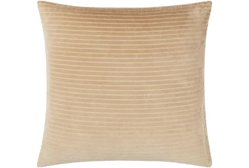 Enhance your home decor with the 18" x 18" Tan Cotton Velvet Stripes Down Fill Accent Pillow by Surya. This square pillow features a soft and inviting tan color that complements any space. Its down cushions provide comfort and support, while the cotton fabric ensures durability and ease of maintenance.