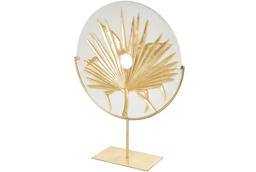 This 16" X 5" X 22" Gold Polystone Leaf Round Disk Sculpture with Center Cutout and Gold Base is a stunning addition to any decor. The gold finish adds a touch of sophistication, while the unique leaf design brings a natural element to your space. Perfect for adding a touch of minimalist maximalism to your home.