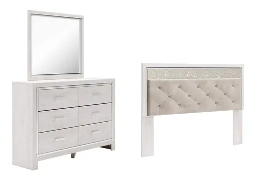 Altyra King Panel Headboard Bed with Mirrored Dresser
