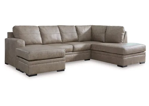 Bring a touch of indulgence and affordability into your home. The Amuleto sectional with chaise prioritizes comfort to fit your modern lifestyle, with richly neutral leather and faux leather upholstery embracing you in irresistibly soft seating. It's a chic, contemporary way to complete your home's entertainment area.