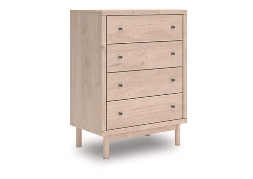 Looking for a chest of drawers that's both playful and practical for your little one? This piece is just the ticket. Its charming design and light wood finish create a whimsical and inviting atmosphere. Four smooth-gliding drawers provide plenty of storage, so there's no excuse for a messy room.